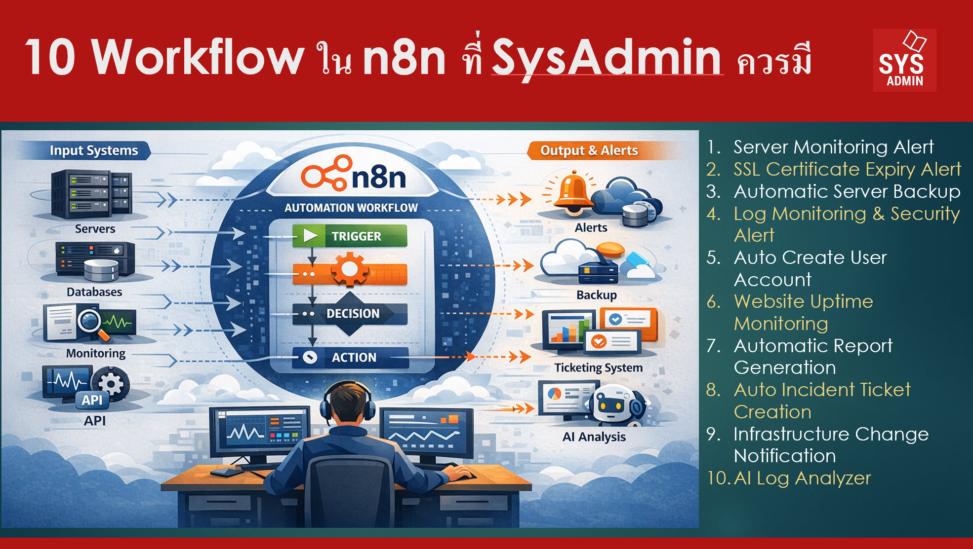 10 Workflow ใน n8n ที่ SysAdmin ควรมี