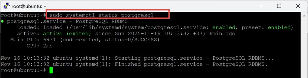 บริการ PostgreSQL จะเริ่มทำงานอัตโนมัติหลังติดตั้ง