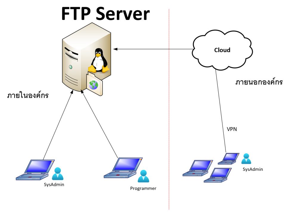 FTP (File Transfer Protocol) เป็นโปรโตคอลมาตรฐานที่ใช้สำหรับการโอนย้ายไฟล์ระหว่างเครื่องคอมพิวเตอร์ในเครือข่าย ไม่ว่าจะเป็นการอัปโหลดไฟล์ไปยังเซิร์ฟเวอร์ หรือการดาวน์โหลดไฟล์จากเซิร์ฟเวอร์กลับมายังเครื่องผู้ใช้ สำหรับระบบปฏิบัติการ Ubuntu Server 24.04 เครื่องมือยอดนิยมที่ใช้ในการให้บริการ FTP คือ vsftpd (Very Secure FTP Daemon) ซึ่งได้รับการออกแบบให้มีความปลอดภัยสูง เสถียร และรองรับการทำงานในสภาพแวดล้อมองค์กรได้ดี
