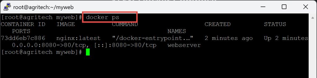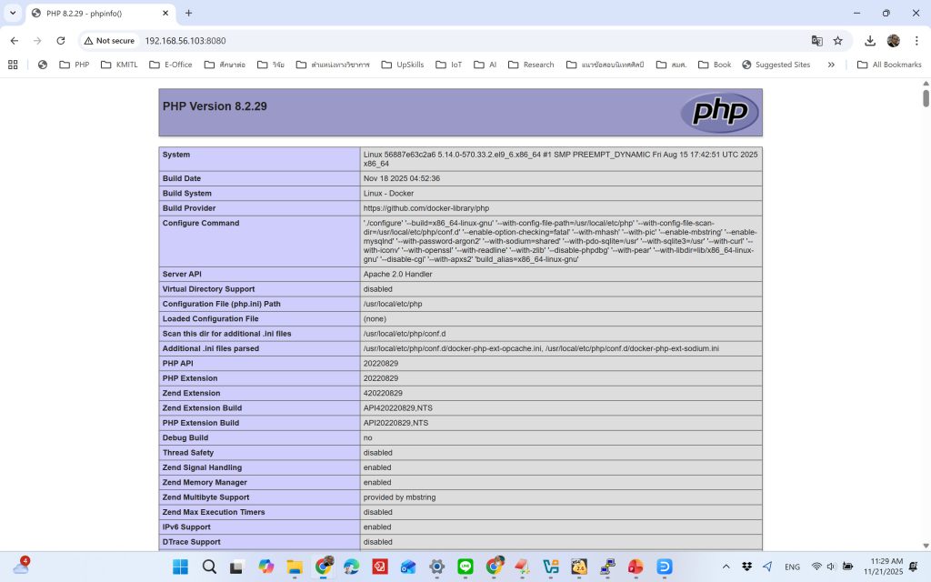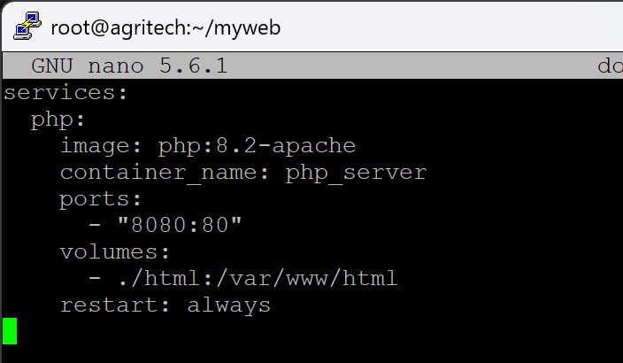 ports: เปิดให้เข้าผ่านพอร์ต 8080 ของเครื่อง → เชื่อมกับพอร์ต 80 ใน container