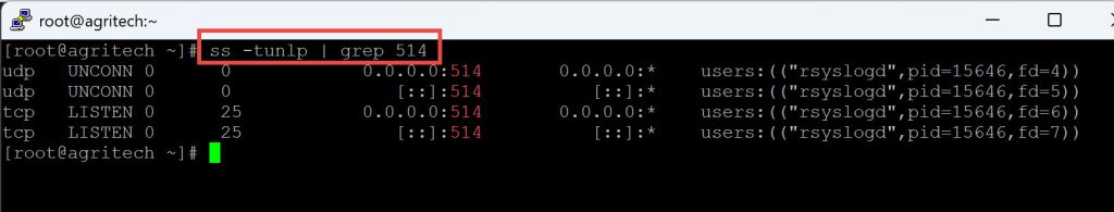 ss -tunlp | grep 514