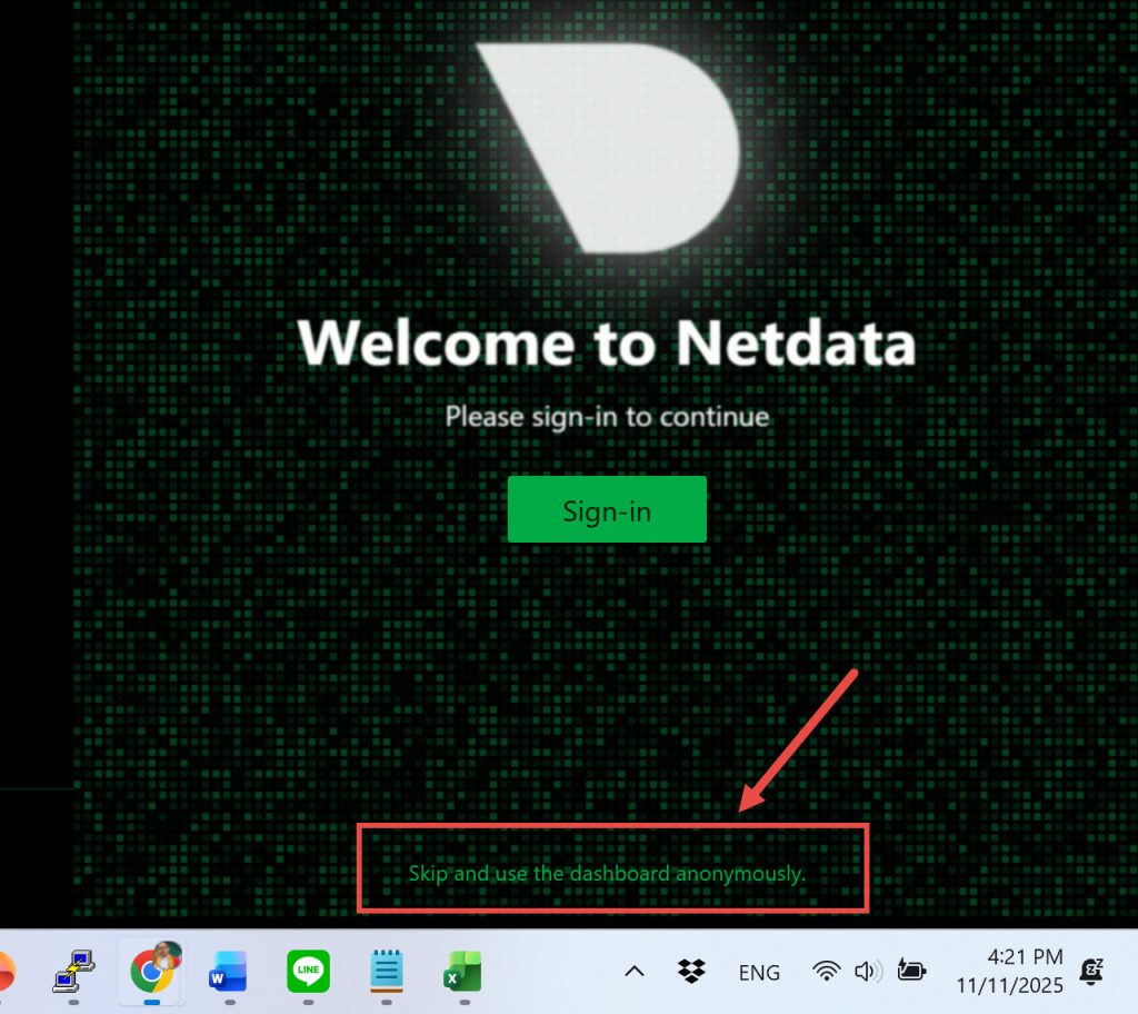 โดยค่าเริ่มต้น NetData จะให้บริการผ่านพอร์ต 19999