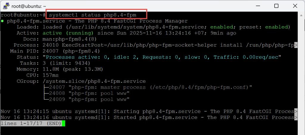 systemctl status php8.4-fpm