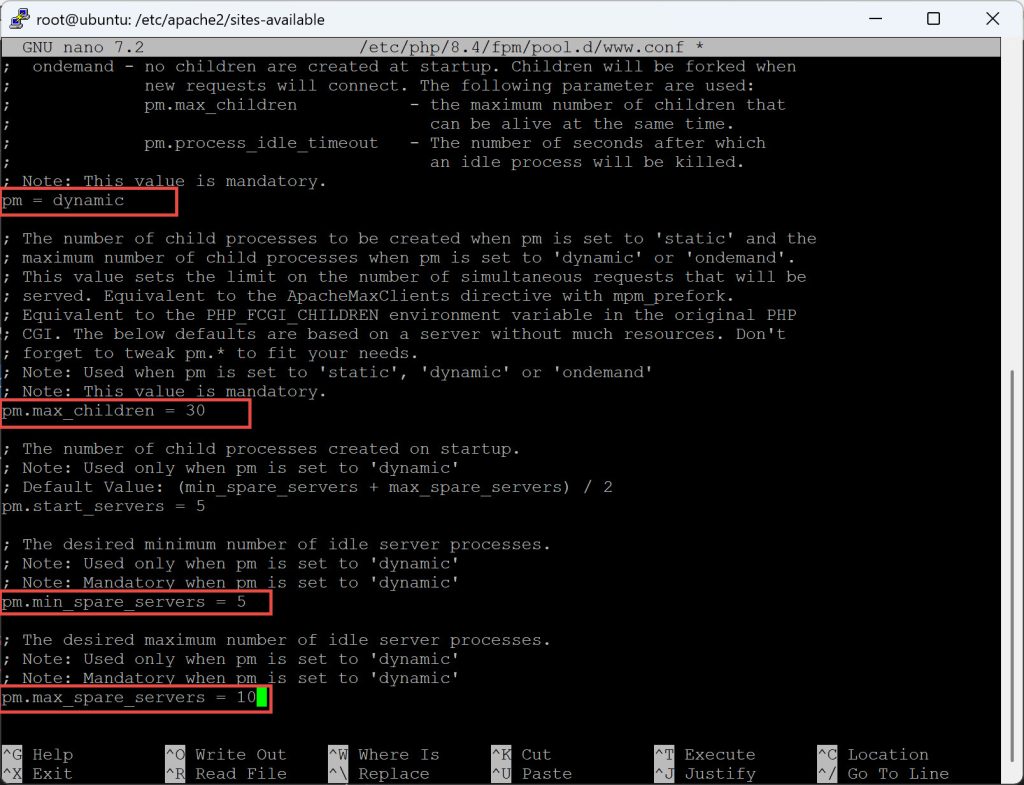 pm.max_spare_servers = 10