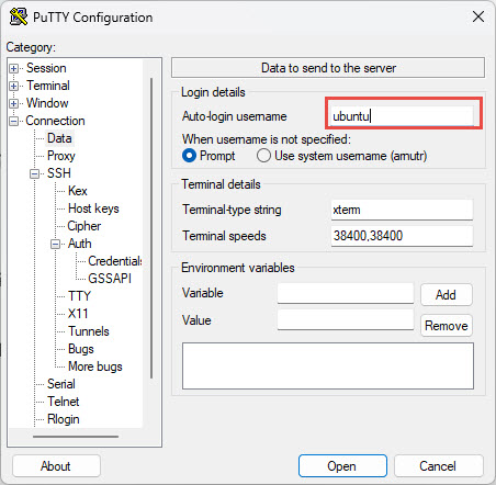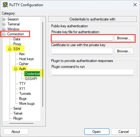 2. เมนู Connection → SSH → Auth → Credentials