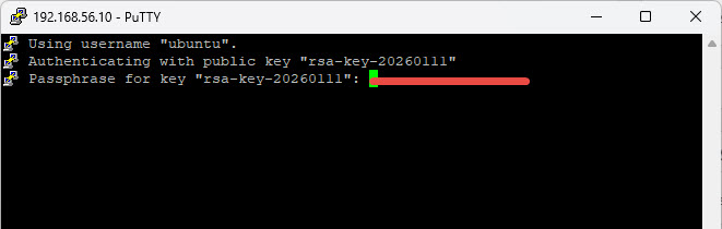 2. หากตั้งค่าถูกต้อง เซิร์ฟเวอร์จะไม่ถามรหัสผ่าน (ถ้าคุณตั้ง Passphrase ไว้ในตอนแรก ระบบจะถามรหัสของไฟล์ Key แทน)