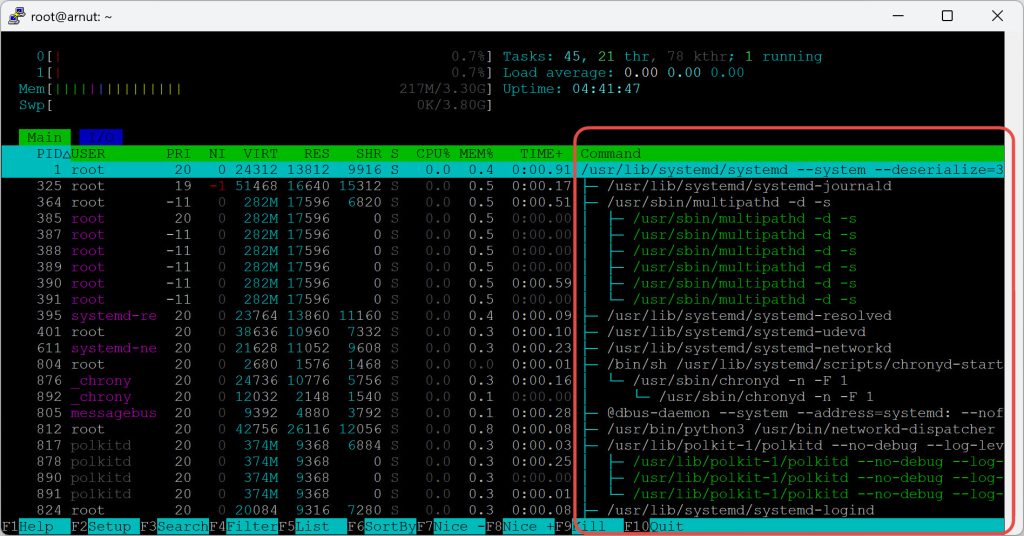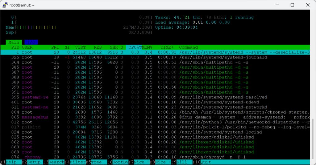 top→ มีในทุกเครื่อง เหมาะกับ Server ขั้นพื้นฐานhtop→ เหมาะกับ SysAdmin ที่ต้องการดูระบบง่ายขึ้น