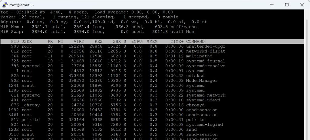 MiB Swap: 3894.0 total, 3894.0 free, 0.0 used. 3010.9 avail Mem